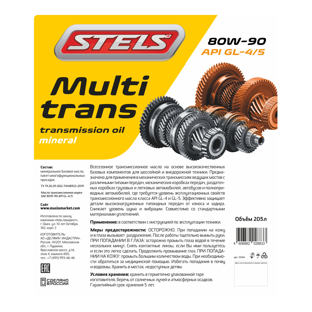 Масло трансмиссионное STELS Multitrans 80w-90 GL-4/5 1л розлив из бочки 33144R
