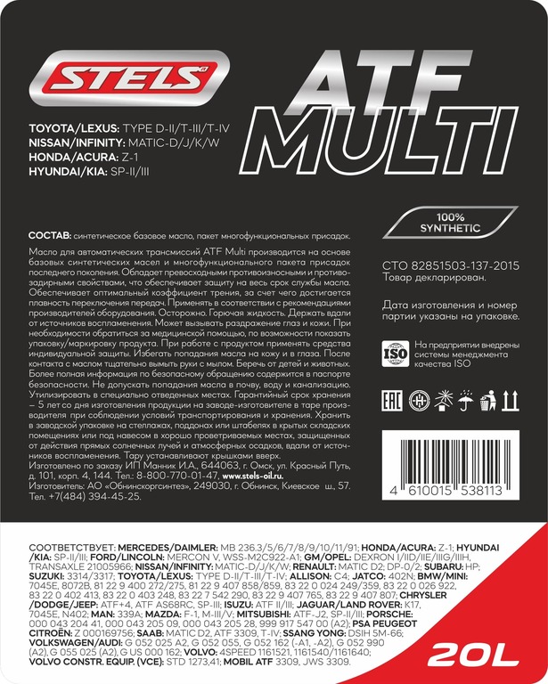 Масло трансмиссионное STELS ATF MULTI 20л